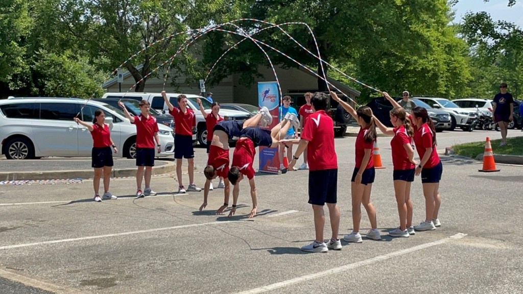 Kangaroo Kids Jump Rope is a precision jump rope team with classes for all skill levels from ages 6 to 18, located in Howard County, MD. They perform at schools, events, halftime shows, and compete nationally and globally. Their team is committed to promoting physical fitness, good sportsmanship, and a love for the art of jump rope.